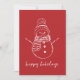 Modern Bright Red Simple Snowman Outline Holiday Card