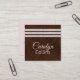 Modern stylish square business card done in a brown on brown design, on the front and solid blush, on the back. Graphics of three blush glitter looking bands run across the front top of the card. Personalise the text to suit your business needs. A lovely stand out card for her.