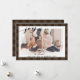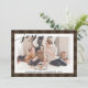 Modern Brown Buffalo Plaid Elegant Script JOY Simple Holiday Card. Send customisable and personalised holiday greetings to friends, colleagues and family in simple, chic, elegant and modern photo design festive, natural minimalist style cards! A beautiful calligraphy of " joy " frames your photo in front. Below the photo features your custom greeting message from your family name in modern typography. Reverse to reveal a beautiful dark brown burlap buffalo plaid texture background.