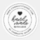 Round Modern Brush Handmade With Love Heart sticker featuring the word "Handmade" in fun brush script font, "with love" in modern sans serif, a cute heart and a double border for your web address and name in between it that is easy to personalise. It's perfect for hobbyists, crafters and makers of handmade goods like artists, knitters, etc.