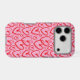 Cute pink and red heart pattern iPhone case features a modern brush design.