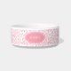 This modern pink and white brush heart pattern pet bowl can be personalised with a name or monogram. Great for a cat or dog.