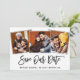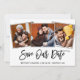 Modern Brush Script Rustic Wood Couple 3 Photo Save Our Date Engagement Announcement Card