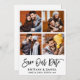 Modern Brush Script Save Our Date 4 Photo Couple Engagement Announcement Card