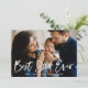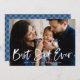 Cute, modern father's day card featuring your favourite family photo with "Best Dad Ever" in a white, hand-lettered brush script overlay. Personalise the front of the father's day card by adding a custom greeting and your name(s). The card reverses to a blue and white plaid pattern.