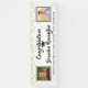 Gold confetti and CONGRATULATIONS (graduate's name) in a brush script font in black against an editable white background you can change to coordinate with school colours or your graduation party colour scheme or decor. Honour and celebrate the graduate and welcome party guests with this banner sign featuring two photos of the graduate for a young man or woman. Personalise it with their name, school and graduation year or whatever text you desire. PHOTO TIP: For fastest/best results, choose a photo with the subject in the middle and/or pre-crop it to a square shape BEFORE uploading and it will fill in the photo space provided perfectly. Contact the designer if you’d like this design modified, on another product or would like coordinating items