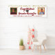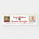 Gold confetti and CONGRATULATIONS (graduate's name) in a brush script font in red against an editable white background you can change to coordinate with school colours or your graduation party colour scheme or decor. Honour and celebrate the graduate and welcome party guests with this banner sign featuring two photos of the graduate for a young man or woman. Personalise it with their name, school and graduation year or whatever text you desire. PHOTO TIP: For fastest/best results, choose a photo with the subject in the middle and/or pre-crop it to a square shape BEFORE uploading and it will fill in the photo space provided perfectly. Contact the designer if you’d like this design modified, on another product or would like coordinating items