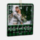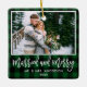 Modern Brush Script, Rustic Green Plaid Married and Merry Wedding Photo Ornament