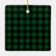 Modern Brush Script Green Plaid Married and Merry Ceramic Ornament