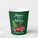 Modern Brush Script Holidays Red Truck Green Paper Cups