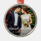 Modern Brush Script Married and Merry Wedding Photo Ornament - Round