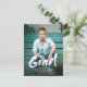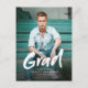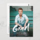 Modern brush script Graduation Announcement with photos in front and back, simple and unique. Custom it with your own photos and grad party information.