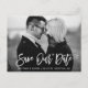 Modern Brush Script Save Our Date Engagement Couple Photo Postcard - Black and White Photo