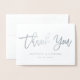 Modern Brush Script Silver Thank You Wedding Photo Foil Card