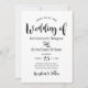 A striking portrait wedding invitation featuring oversized black brush script "Wedding of" lettering on a clean white background. The bold hand-lettered style mixed with structured serif typography creates an effortlessly modern look for contemporary couples. All text is fully editable for your ceremony and reception details.