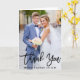 Modern Brush Script Wedding Photo Folded Thank You Card