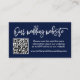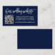 Modern Brush Script. Minimalist Simple Wedding Website Enclosure Card with your QR Code. Navy Blue