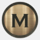 A stylish modern stationery sticker with brushed metallic gold monogram medallion in classic block typography with gradient border in shades of black chestnut brown. You can customise using the fields provided. Ideal for mailing, labelling or decoration.