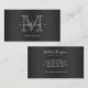 Modern Brushed Metal Black Grey Script Monogram Business Card