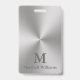 Modern Brushed Metal Look Grey Name Text Monogram ID Badge