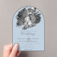 Set the tone for your celebration with this stunning Blue Modern Brushstroke Arched Acrylic Wedding Invitation, a contemporary piece of modern wedding stationery that beautifully combines clarity and style. Featuring your couple’s photo framed in a soft brushstroke frame, this invitation is printed on luxe, arched acrylic—a perfect fusion of form and function. Designed with flowing elegant script and clean modern typography, your wedding details are presented with crisp sophistication. The subtle boho arch shape add a modern artistic touch, making this invitation ideal for chic, trend-forward couples. A keepsake-worthy design that announces your big day with polish and personality.