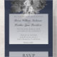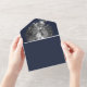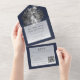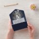 Modern Brushstroke Photo Wedding | Navy Blue All In One Invitation
