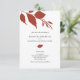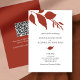 Save on paper and money with this modern budget wedding invitation with QR code. A simple yet classy design, this wedding invite features a classic serif font in in charcoal grey over a crisp white background. A top boarder of rust orange leaves frames your wedding details. The card reverses to a matching rust colour with your wedding QR code and space for additional details. All the colours are customisable. For more budget wedding invites visit www.zazzle.com/dotellabelle