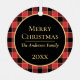 Easily personalise this Christmas ornament with a family photograph on one side and custom text on the other. It features a modified version of a classic buffalo check pattern in red and black with a yellow line accent. This design was created with a special graphic image in which all of the elements feature colours that may be customised by the buyer. Edit the design to give it a try.