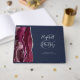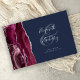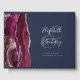 Modern Burgundy Agate Silver Script Navy Blue Guest Book
