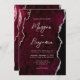 Modern Burgundy Agate Silver Script Wedding Invitation