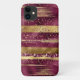 Modern burgundy and gold brush strokes iPhone 11 Case. It displays brush strokes in burgundy and gold and confetti.