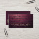 This modern business card features a background image of a dark burgundy brick wall. Personalise it with your name in chunky gold-coloured serif font and your business information in sans serif font. The back of the card features gold-coloured text on a solid dark burgundy background, along with a QR code that directs customers to your business website.