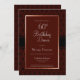 A modern rustic burgundy 60th birthday dinner party invitation with a rich black and burgundy damask frame which has been modernised with a metallic copper/rose gold border.