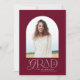 Geometric modern typography elegant pastel natural beige and burgundy photo arch graduation announcement card.
