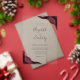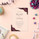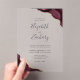 Two corners of this elegant modern wedding invitation feature burgundy watercolor agate trimmed with faux gold glitter. The customisable text combines handwriting, copperplate and italic fonts in charcoal grey on a clear background.