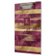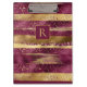 Modern burgundy and gold brush strokes and monogram clipboard featuring brush strokes in burgundy and gold and confetti.