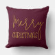 Modern Burgundy Gold Minimalist Merry Christmas Cushion