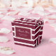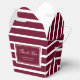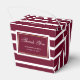 Modern custom burgundy wedding favour boxes featuring white stripes on a burgundy background. Easily personalise these burgundy wedding favour boxes with your wedding details. Our modern burgundy wedding favour boxes are perfect for your elegant burgundy wedding party. These personalised thank you favour boxes can be customised to other occasions, such as bridal, or baby showers.