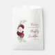 Thank your guests with these elegant modern wedding favour bags, featuring a watercolor floral bouquet of burgundy and blush flowers and eucalyptus greenery on the left side, and stylish script ampersand with the names of the bride and groom on the right. Find matching products in the collection, or message me through Zazzle Chat for more products or different colorways.