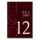 Modern Burgundy Monogram Minimalist Wedding Table Number