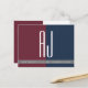 Elegant, simple, contemporary grey-green, burgundy and navy blue wedding save the date announcement postcard, with giant monogram initials at the front and modern calligraphy.