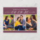 Rich and dramatic, this save the date postcard features a deep burgundy header with the couple's names and wedding date in crisp white typography. Three customisable photo panels showcase your favourite engagement or couple photos in a bold triptych layout. The mailable postcard reverse includes address fields. A sophisticated choice for burgundy, wine, or fall wedding colour palettes.
