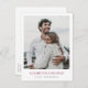 This simple, stylish modern photo wedding save the date postcard template features your names, date and wedding locale beneath your photo. You might choose to change the font, punctuation or colour used for various text elements of this design on the front and/or back. For example, you might choose to give a different colour to your name text, or to delete something or change a text field entirely with a different message. On the back, you might decide to delete the lines for the addressee's information if you prefer a more minimalist look, etc. We've highlighted your names on the front in an elegant shade of burgundy and the default text colour for your wedding date and locale on the front is a slightly softened black. And on the back the default text colours are the same black tone and a shade of grey. On the back we chose an atypical order for the information, putting the 'SAVE THE DATE' text after the 'FOR THE WEDDING OF' text, which lends a path less travelled charm to it. You can alter this by changing the text in each of these text fields and entering by hand the part you want to place in the order you want to show it. We set the background on the back and the part of the design below the photo on the front as transparent to let the colour of the paper simply serve as the base tone.. You can easily change this by either picking one of the basic colours in the editing tools, entering a colour number if you have a specific hue in mind that you found in your research, or by looking at the colour spectrum tool and choosing something by sight. We've made matte the default paper choice but you can change this to -semi-gloss if you prefer that look. We hope you'll enjoy experimenting with this clean, contemporary save the date template design and make it uniquely yours with the intuitive design tools, your favourite photo and your inspiration. We have a selection of other modern minimalist save the date cards in various formats, so please have a look!