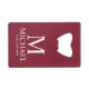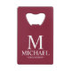 featuring personalised monogram, groomsman's name and title in white classic serif font style on burgundy red background.