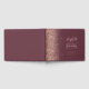 This elegant wedding guest book features a left-hand border of faux rose gold glitter on a dark burgundy background. Easily customise the rose pink text with the names of the bride and groom in whimsical handwriting calligraphy over a large ampersand. Add additional text of your choice to the front and spine.