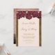 This elegant floral wedding rehearsal dinner invitation features a border of burgundy roses on a blush pink background bordered with dark gold. Personalise your details in modern calligraphy script. The back of the inviation has a modern artistic painting of a vase of roses with your custom momogram. Designed by artist Susan Coffey.