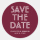 Modern burgundy wedding save the date sticker/envelope seal. Easily edit online with your wedding details.