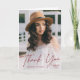 Modern photo graduation thank you card featuring the graduate's vertical photo with "thank you" in a handwritten burgundy calligraphy script overlay. Personalize the front of the graduation thank you card by adding the graduate's name and graduation year. The inside of the folded graduation thank you card features a trendy burgundy and white dotted geometric pattern on the left with your typed or handwritten message on the right.