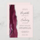Modern Burgundy Silver Agate Blush QR Code Wedding Invitation