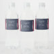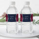 Modern Burgundy Silver Agate Navy Blue Wedding Water Bottle Label